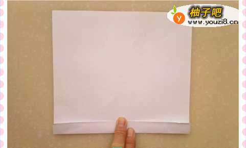 5再将纸向右旋转90度从下向上折叠约1cm(如图5)。
