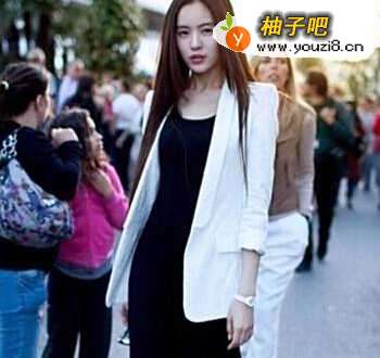 西装式的外套搭配长裙,能提升整个人的职业感,不仅干练成熟的气质,更增加了几分优雅