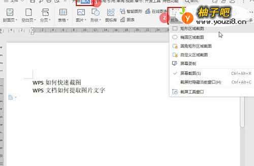2点击菜单栏的【插入】—【截屏】—【矩形区域截图】;