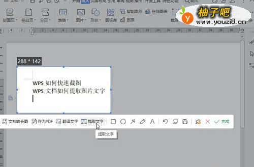 3用“鼠标左键拖动”选择截图区域,然后点击工具条上的【提取文字】;