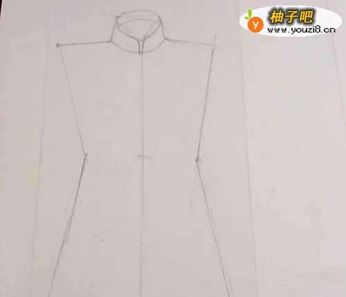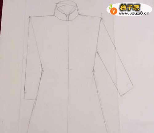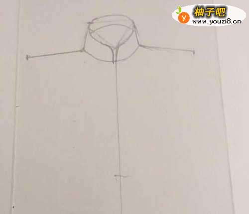 3第三步 再画两道斜肩线领子中央画一道垂直线