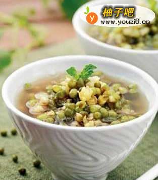 绿豆汤 夏日炎炎,绿豆汤大受欢迎,但此汤不宜多喝,更不能当水喝。想消暑,煮汤时将绿豆淘净,用大火煮沸,加入适量冰糖,10分钟左右即可,汤色碧绿,比较清澈。根据个人喜好,亦可放入百合、莲子、红枣等。只为清热解毒,最好把豆子煮烂,这样的汤色浑浊,消暑效果较差,但清热解毒作用更强。 但要注意,脾胃虚弱的人不一定要喝绿豆汤,可以吃绿豆粥,将大米或小米和绿豆同锅煮粥,对脾胃起滋补作用。 推荐薄荷绿豆汤的做法:薄荷5克,薏仁30克,绿豆60克,冰糖1~2大匙。薏仁、绿豆均洗净,泡水3小时备用。锅中倒入800毫升水,加入薏仁及绿豆以中火煮开,改小火熬煮半小时,加入薄荷、白糖继续煮5~10分钟,盛入碗中即可食用。此汤可清热解毒,改善青春痘。