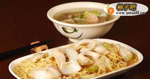度小月担仔面几乎是台南最有名的一道小吃。可为什么叫“度小月”呢?原来90多年前,一位漳州籍洪姓渔人移民府城,靠打渔为生。每年从清明到中秋,是打渔的淡季,当地叫“小月”。为养家活口,度过“小月”,洪姓渔人就卖起面来,因此得名。由于口味独到,渐渐卖出了名气,成为风行台湾的“名吃”。现在,洪家已传到第三代,生意还是相当兴隆。担仔面的最大特色,在于它的肉臊。早期,老板挑着碗筷与锅子到处叫卖,买者半蹲式地坐在小凳上食用。今天,卖者仍用一个小炉烧着木炭来煮肉臊,再加上一只味道鲜美的虾子,虽然就这么小小一碗,但风味独特,回味无穷。