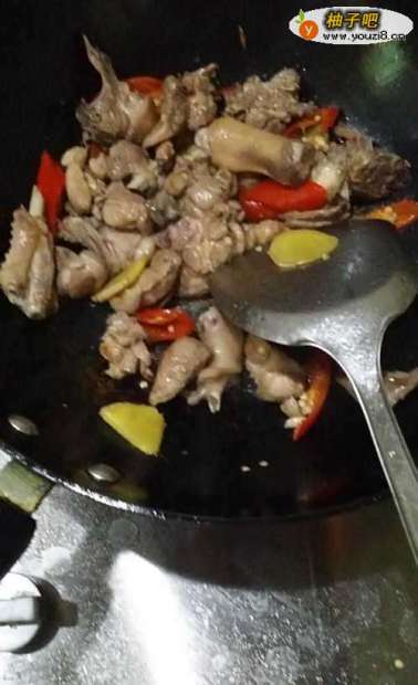 5加入切好的红辣椒,与鸭肉一起翻炒1-2分钟
