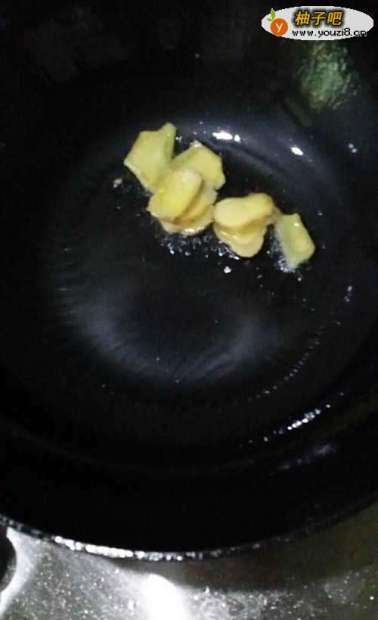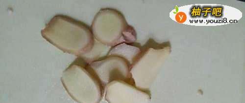 姜切成厚片。红辣椒切片。土豆刨皮,切成厚块。
