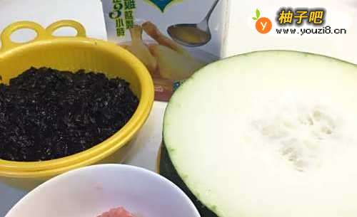 1、将冬瓜紫菜洗净,冬瓜切细件,用豆豉油和胡椒粉腌肉