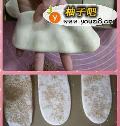 5表面糊点水粘白芝麻。送入预热好的烤箱中下层220度12分钟左右。