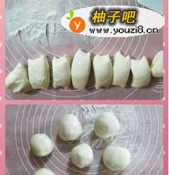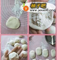 4每份面团包裹约12克馅料压平擀成牛舌状态