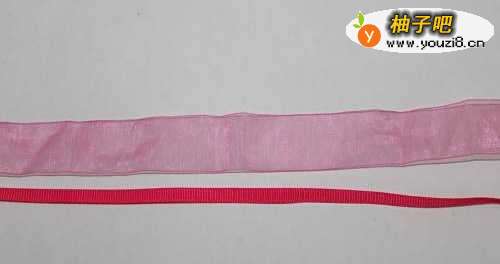 首先准备好纱带,出此之外还要准备好珠子和细丝带。