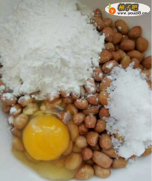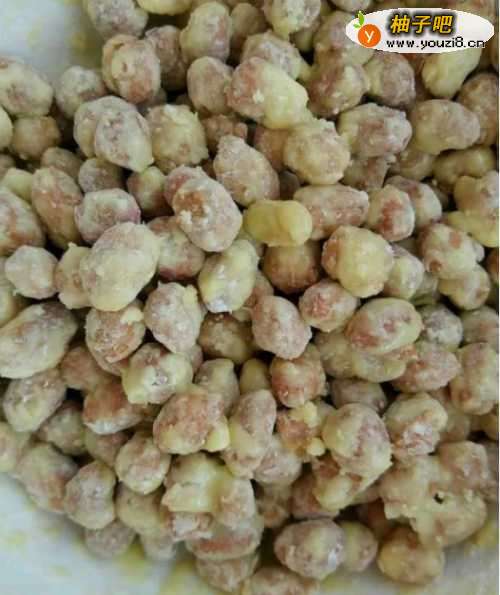 3然后用手抓拌均匀,尽量让花生米沾满。