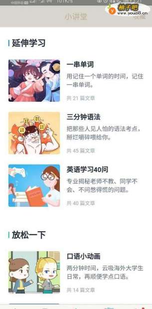 4然后,可以在小讲堂里学习语法等知识,通过一些动漫形象文章更易接受