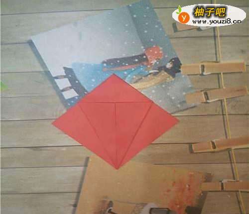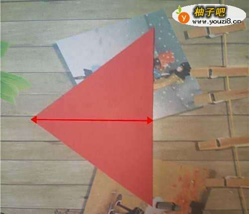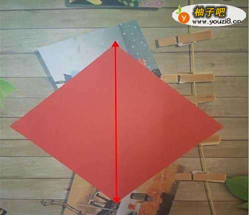 首先我们准备一张正方形的纸呈菱形状摆放在桌面上,然后再将其对折如图2。