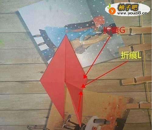 7固定折痕G,以折痕L为准并将其向外翻折如图2。