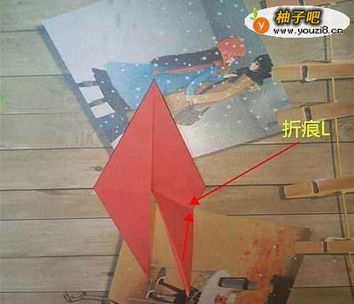 6再将右角以折痕L为准向上折叠。