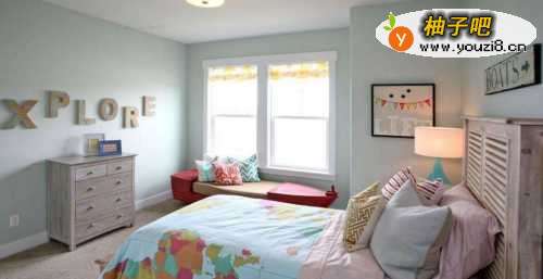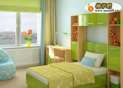 儿童房色调应以浅色为主,因为越鲜艳的涂料重金属含量越多,尤其是铅污染。另外,如果房间中出现过多的色彩容易降低儿童对色彩的辨认度,在整体明亮轻快的浅色调中突出一两种重点颜色更容易加深儿童对色彩的鲜明印象。