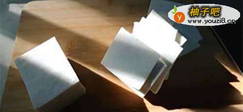 3乳饼切成同等方块,快刀慢切