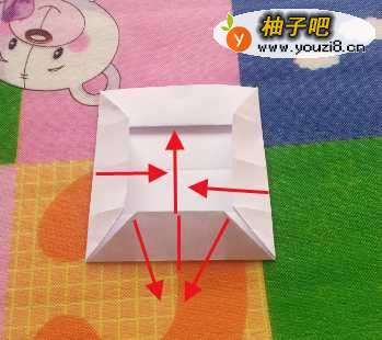 9将四个角分别向里折,使各自的短边与中线对齐。