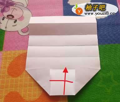 5下边沿第一个折痕向上折。