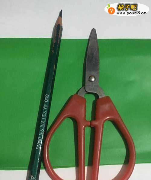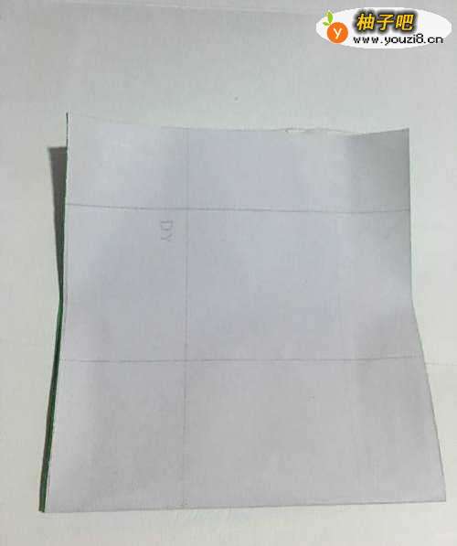 第一步 先把一张长24厘米 宽10厘米的长方形绿色彩纸 从下向上对边折叠