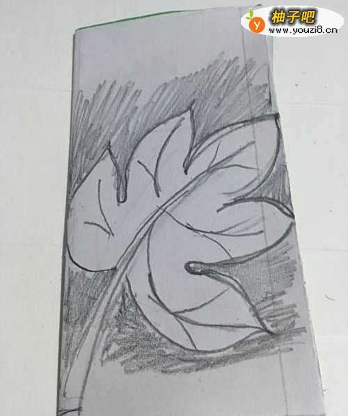 3第三步 画完树叶的纹缕之后 再画上整片树叶 还有树叶上的其它纹缕