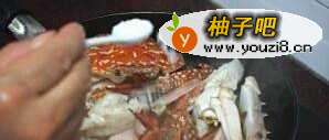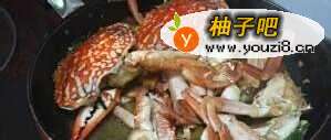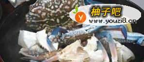 5然后加入花蟹,翻炒片刻。
