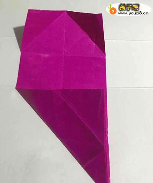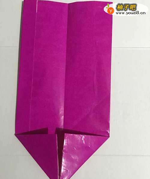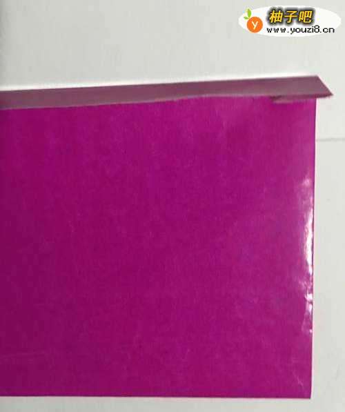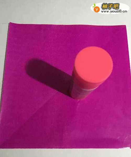 3第三步 用固体胶把0.5厘米的边粘上之后 从下向上对折 然后竖起来取开 左下角和右下角都向上折叠至中线