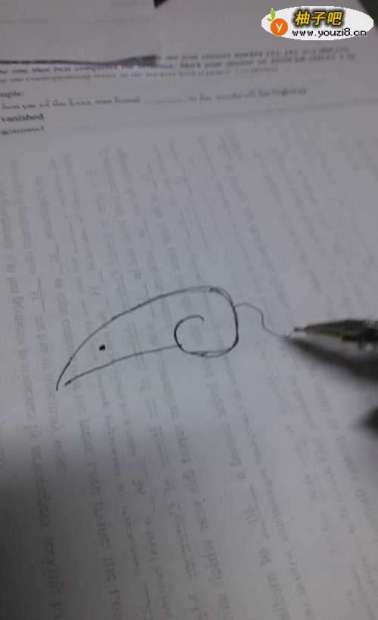 2先画一个如图所示的曲线圈,勾出老鼠的身体的屁股。