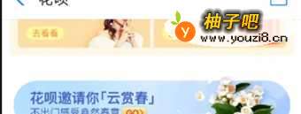 2打开花呗首页,找到封面上邀你云赏春,点击进入。