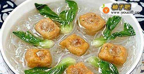 美味秘笈:汤水够清,味道够鲜。油豆腐、粉丝加上鸡毛菜,再加个双档,保证你鲜地掉眉毛。