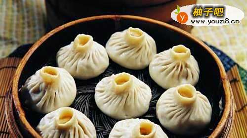 南翔小笼驰名中外,已有百年历史。初南翔小笼名“南翔大肉馒头”,后称“南翔大馒头”,再称“古猗园小笼”,现叫“南翔小笼”。大肉馒头采取“重馅薄皮,以大改小”的方法,选用精白面粉擀成薄皮;又以精肉为馅,不用味精,用鸡汤煮肉皮取冻拌入,以取其鲜,洒入少量研细的芝麻,以取其香;还根据不同节令取蟹粉或春竹、虾仁和入肉馅,每只馒头折裥十四只以上,一两面粉制作十只,形如荸荠呈半透明状,小巧玲珑。