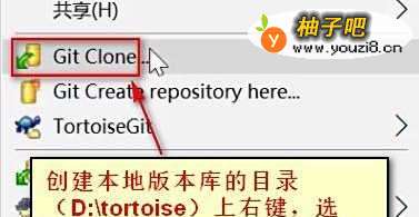 33.创建本地版本库的目录(D: ortoise)上右键--》选择Git Clone的操作