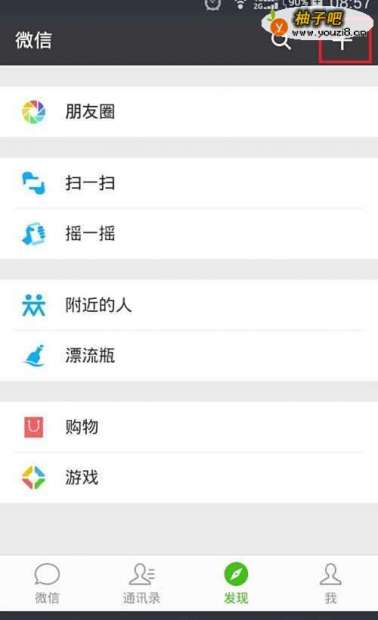 打开微信点击有上角的加号