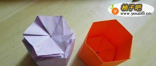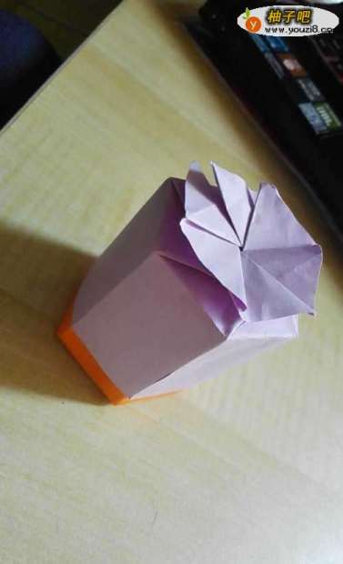 6再取一张纸,折成步骤5的样子,盖在一起就完成了
