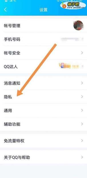 4点击打开隐私,找到好友动态权限设置。