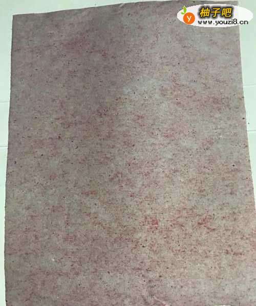 第一步 首先取一张长度为17厘米 宽度为14厘米的长方形红色彩纸 先把它竖起来 反面朝上