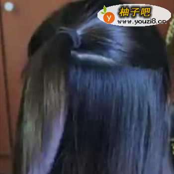 1将头顶上方头发扎起来,从中挑出一束用卡子固定在头顶前方