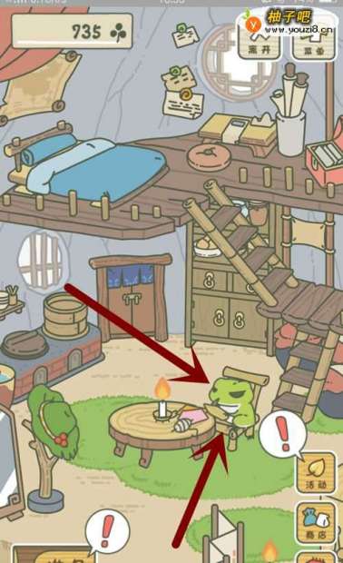 5在青蛙的小屋中,点击正在干活或写作业的青蛙,如图所示