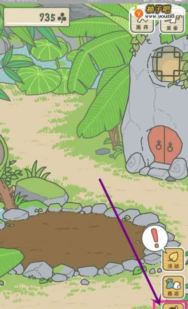 4进入小青蛙的庭院后,点击进入右下角小屋,如图所示