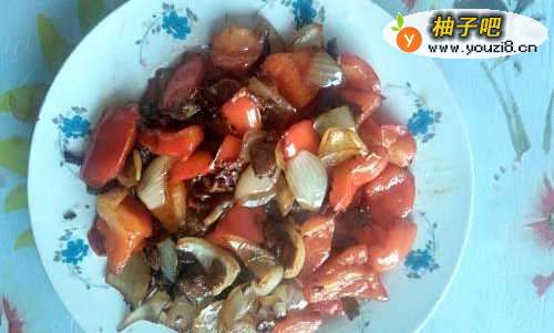 5炒好后,出锅前加上少量鸡精还能体鲜。这样美味的青椒炒圆葱就出锅了。
