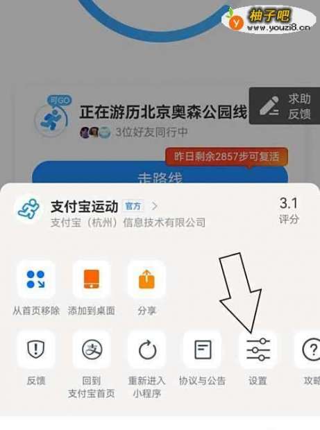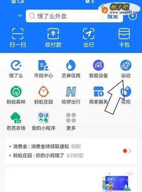 进入支付宝中,在首页找到运动选项,随后在设置中开启每日步数提醒。