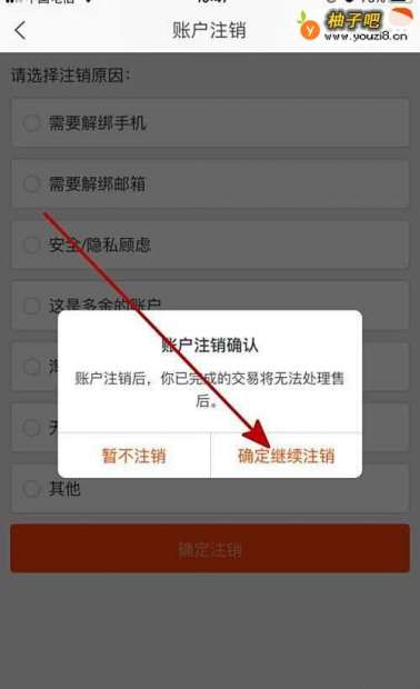 6接着选择一项注销账号的原因,然后点击确定注销即可注销成功,如下图