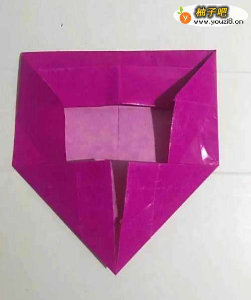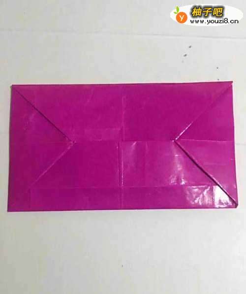 6第六步 折叠完之后 把下面的尖角向上折叠进双边里面 这样就形成了八仙桌子面的角 然后整理一下 一只漂亮的复古老式信封就折叠完成了