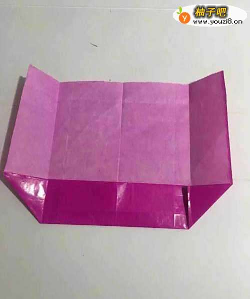 2第二步 平放完之后 从下向上折叠至中线取开 然后再从下向上折叠至第一道折痕