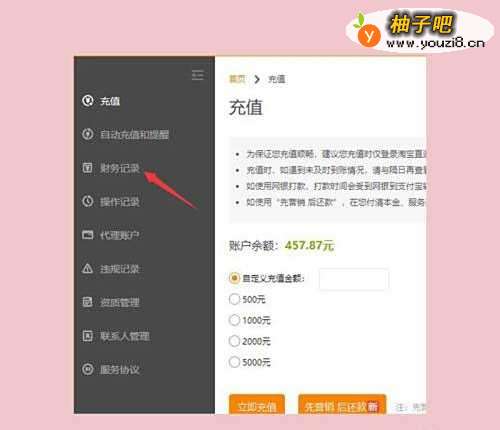 8在页面的左侧菜单栏中选择“财务记录”;