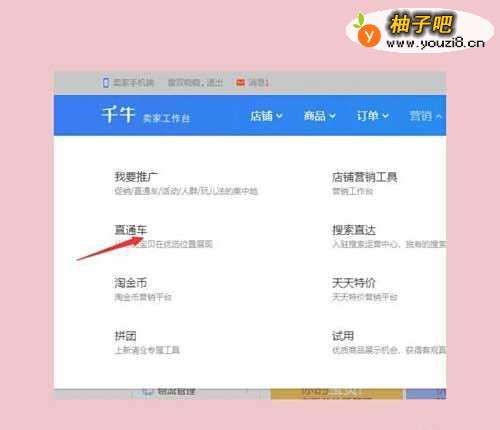 5在页面上方选择营销里的“直通车”;