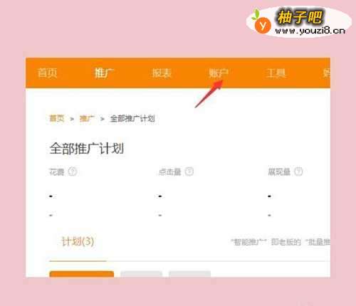 7进入直通车推广页面,选择“账户”;