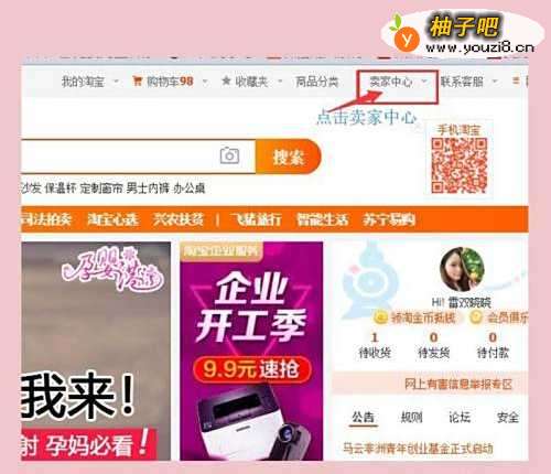 3在登陆的页面右上角选择“卖家中心”;