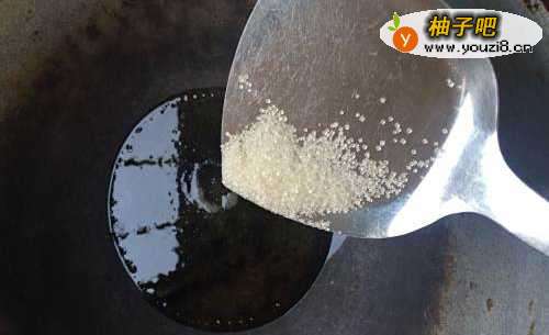 3如图,锅内加入适量适用油烧至八成热,先放一点食盐,这样避免油朝锅外面溅,然后把翅根放进油锅里面翻炒两下。