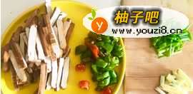 2多加点油,把香干煎一下