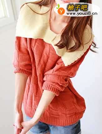 3长袖棒针麻花拼色毛衣,很优雅甜美的一款毛衣一款可爱的蝴蝶结翻领毛衣,麻花与方块的混编纹理,在视觉上体现出丰的层次感,麻花编织的竖排排列起到了显瘦的效果;